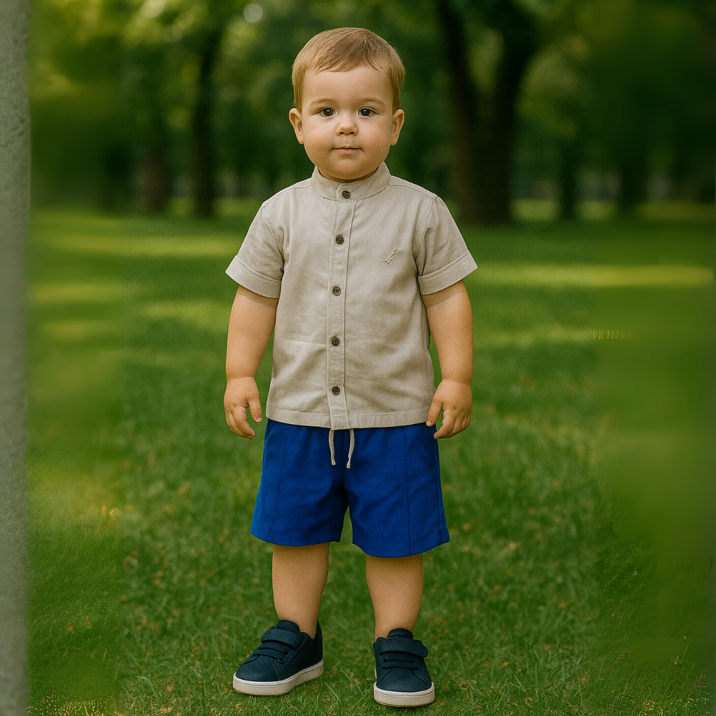 A festa já pode começar, porque o look está definido! A camisa de tecido plano é a escolha ideal para momentos que pedem um visual mais alinhado, enquanto a gola padre e delicado bordado, trazem um toque de modernidade. Já a bermuda, além de confortável, possui bolsos funcionais, cós elástico com cordão decorativo, e recortes que mesclam texturas, garantindo estilo e praticidade. Perfeita para festinhas e eventos, onde o visual precisa estar mais arrumado, mas sem abrir mão do conforto, essencial para as brincadeiras e diversão.